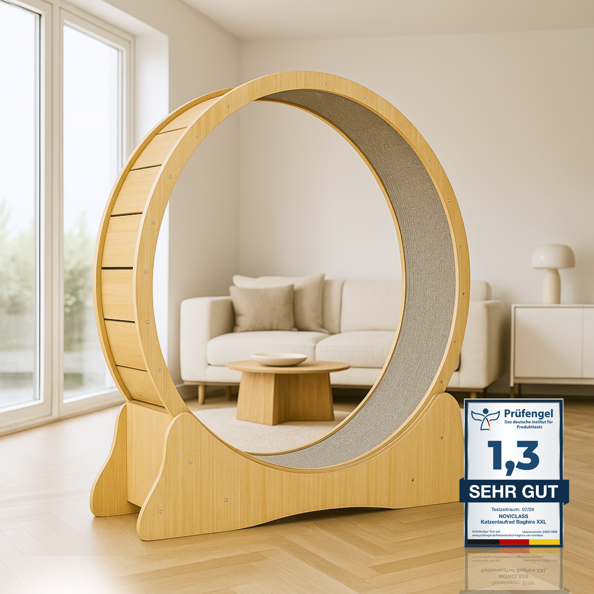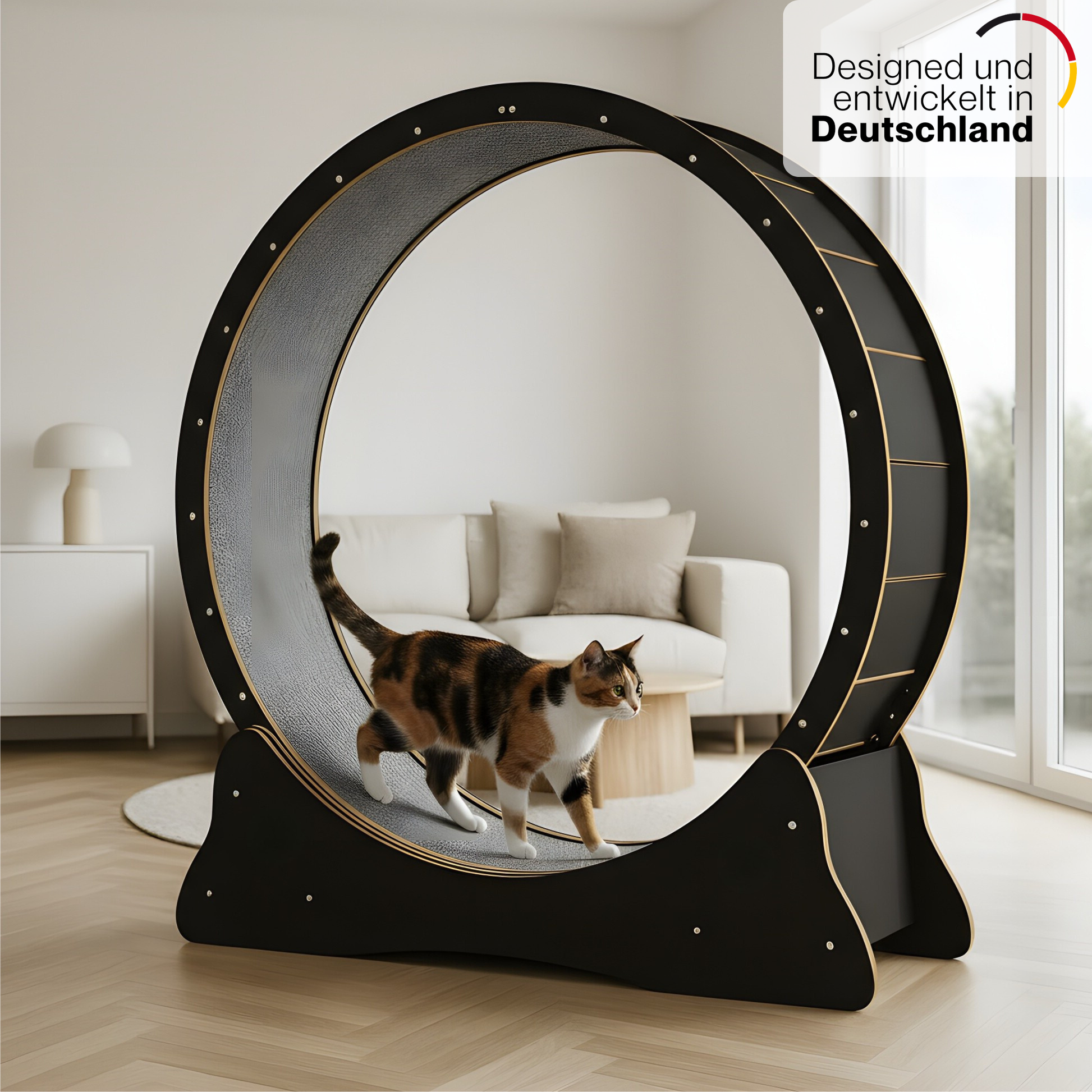 Das Katzenlaufrad selbst läuft recht leise, jedoch kann die Lautstärke je nach Untergrund variieren. Wir empfehlen, es auf einer Fitnessmatte oder einem Teppich zu platzieren, da diese den Geräuschpegel und Vibration zusätzlich dämpfen.