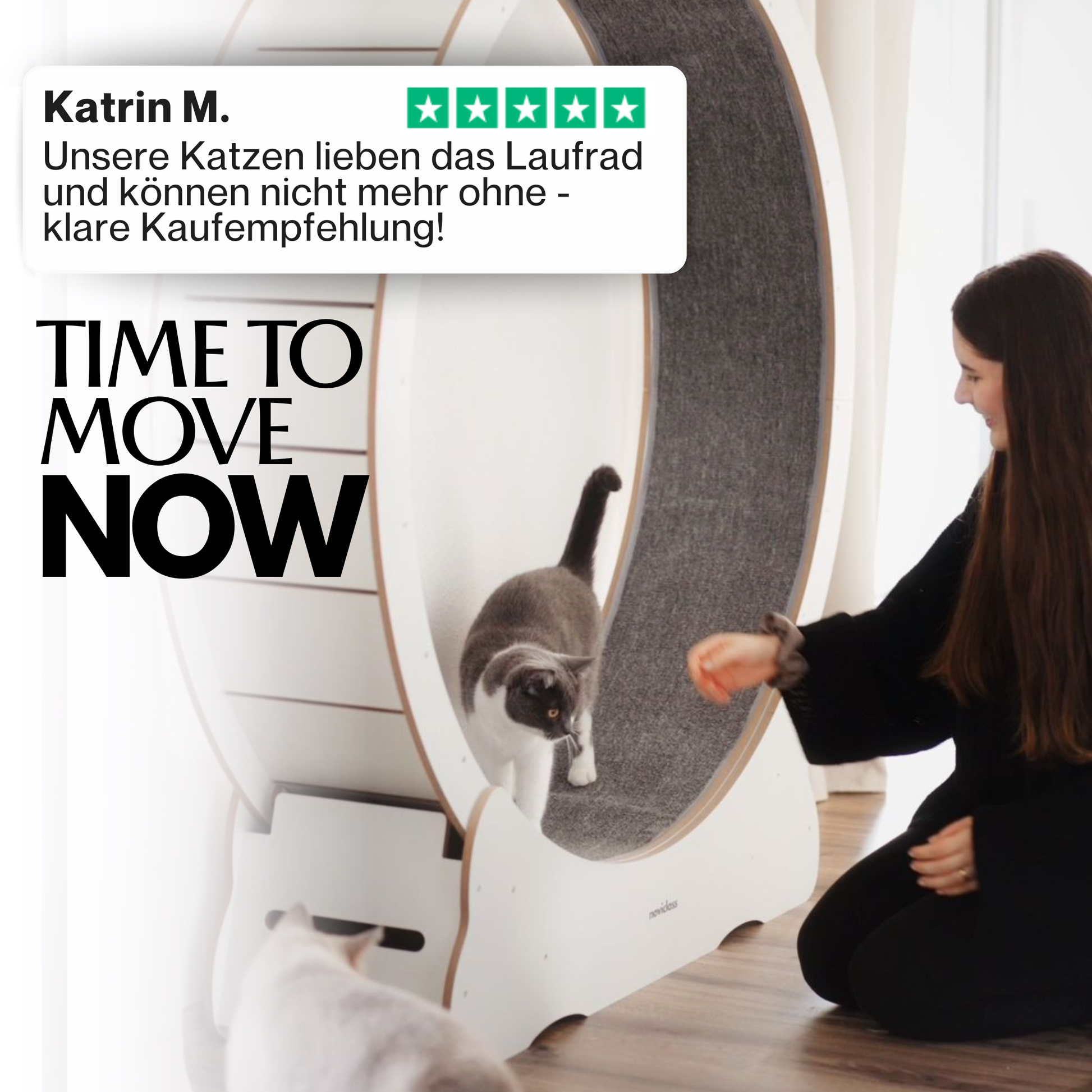 unserer Kunden berichten, dass ihre Katze das Laufrad bereits in den ersten Stunden ausprobiert hat