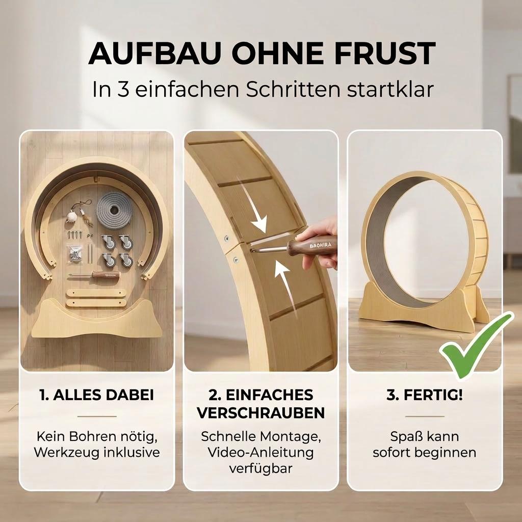 Wie lange dauert der Aufbau des Katzenlaufrads?